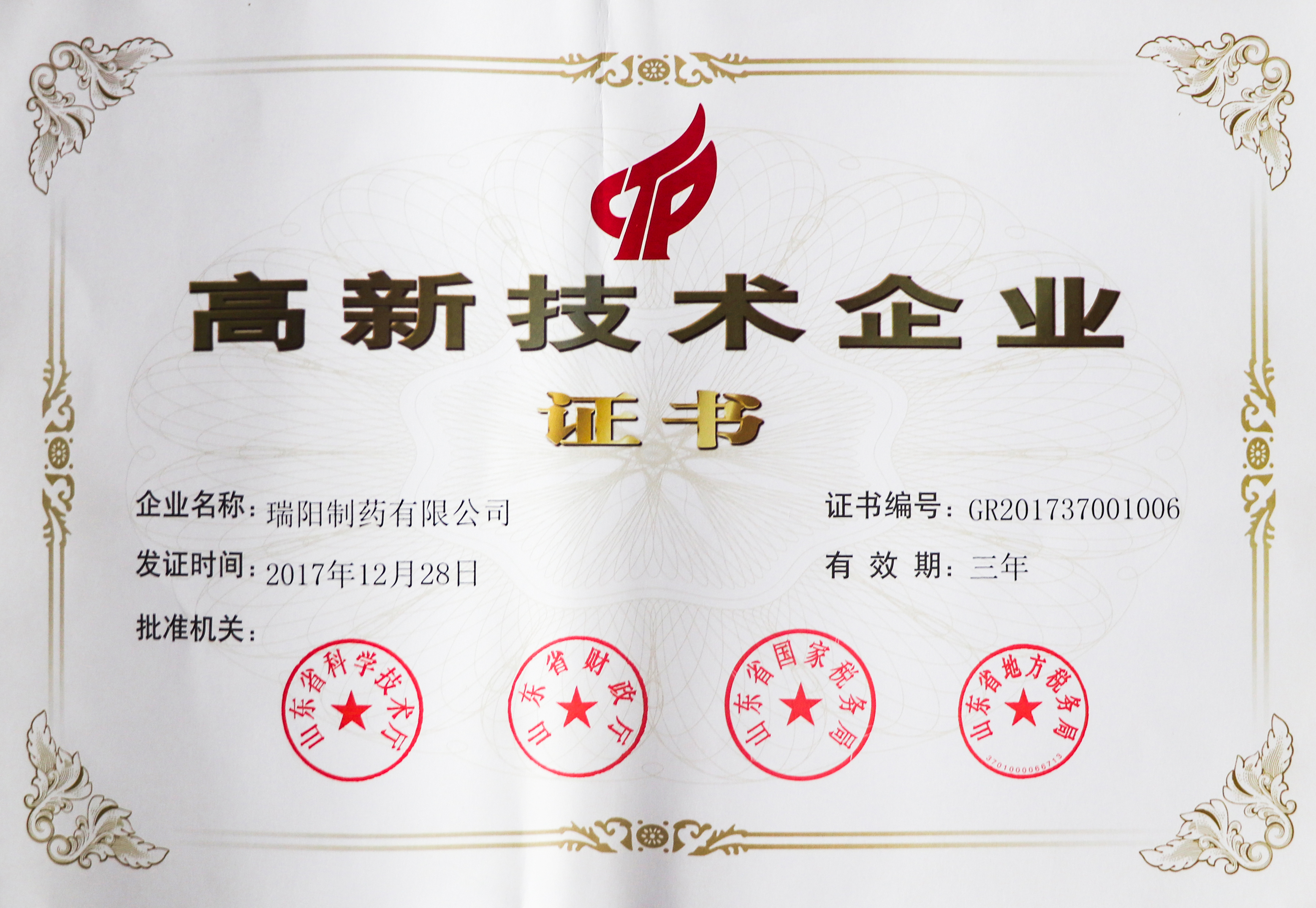 高新技術企業(yè)證書