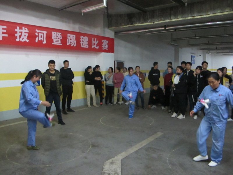 踢毽比賽為限時(shí)賽,采取2分鐘計(jì)時(shí),每隊(duì)5人,同時(shí)在各自1.5米的范圍內(nèi)踢毽, 5人的總體成績?yōu)閳F(tuán)隊(duì)比賽成績。比賽中,毽子在參賽者腳上翻飛起落,單腳踢,左右腳對(duì)踢,內(nèi)踢外翻,花樣不斷,不時(shí)贏得現(xiàn)場陣陣喝彩,整場比賽場面緊張激烈。經(jīng)過比拼,最終322車間代表隊(duì)獲得踢毽比賽一等獎(jiǎng)。