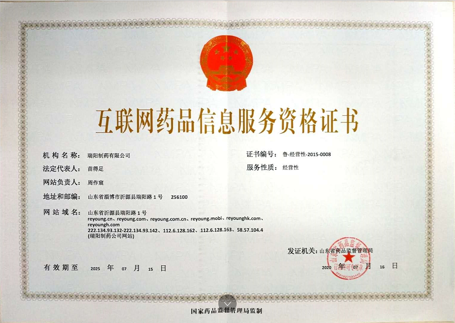 互聯(lián)網(wǎng)藥品信息服務(wù)資格證:魯-經(jīng)營(yíng)性-2015-0008 營(yíng)業(yè)執(zhí)照